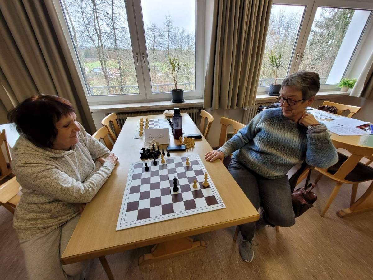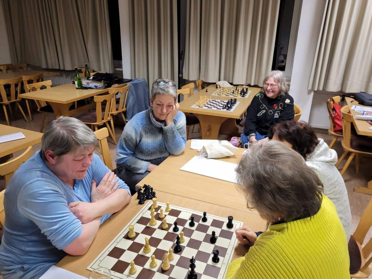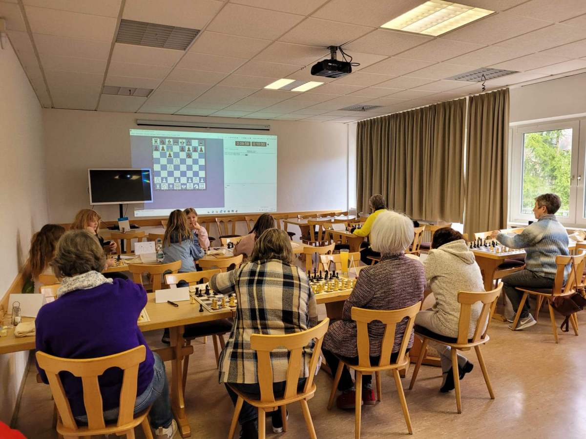 Die Vorstellungsrunde am Freitag zeigte die Motivation, mit der vor allem die Damen sich in das Spiel einarbeiten und gar nicht genug an Tipps und Training bekommen konnten. Das Niveau reichte von Anfängern bis zu Spielerinnen mit DWZ von 1061. Einige haben Schach schon als Kind erlernt, sind aber erst mit dem Rentenalter in einen Verein eingetreten. Andere lernen und spielen zuhause alleine mit Apps wie Lichess und nutzen den Spieletreff in der Saarbrücker Stadtbibliothek zum freien Spielen. Einige kamen als Begleitung von Kind oder Enkelkind und sind dann selbst aktiv in einen Verein eingetreten. Die jungen Mädels haben den Einstieg meist über Familie oder Elternhaus bekommen. Emilia, mit 6 Jahren die jüngste Teilnehmerin, kam in Begleitung ihrer Mutter zum Girlscamp und war mit Spaß und Ehrgeiz dabei. Alle gemeinsam freuten sich auf die Herausforderung und die Gelegenheit, ihre Spielstärke in entspannter Runde zu verbessern.